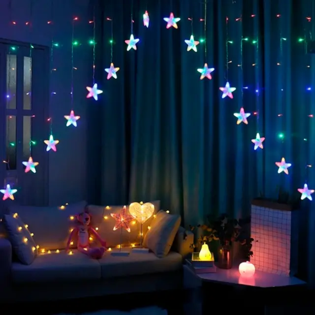 LED svetlobne zavese svetilke luči okno viseče zvezde večbarvne 4.4