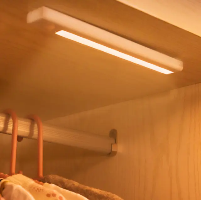 Zahvaljujoč vgrajenemu visokokakovostnemu senzorju lahko LED svetlobna palica zazna gibanje in se vklopi točno takrat, ko potrebujete svetlobo. Zagotavlja močno svetlobo, kot nalašč za tesne prostore in temne kote, kot so garderobne omare, omare, police, shrambe, stopnice in drugo. Enostavna namestitev s priloženim dvostranskim lepilnim trakom. Napajanje s 4 AAA baterijami (niso priložene).