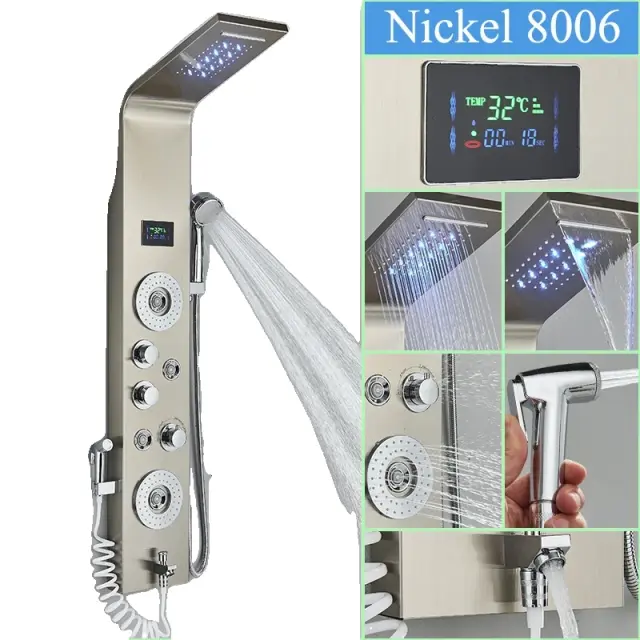 LED Teplomer na Sprchový Panel, 6 Vodných Módov, Odolná Nerezová Oceľ - Nikel-L-8006