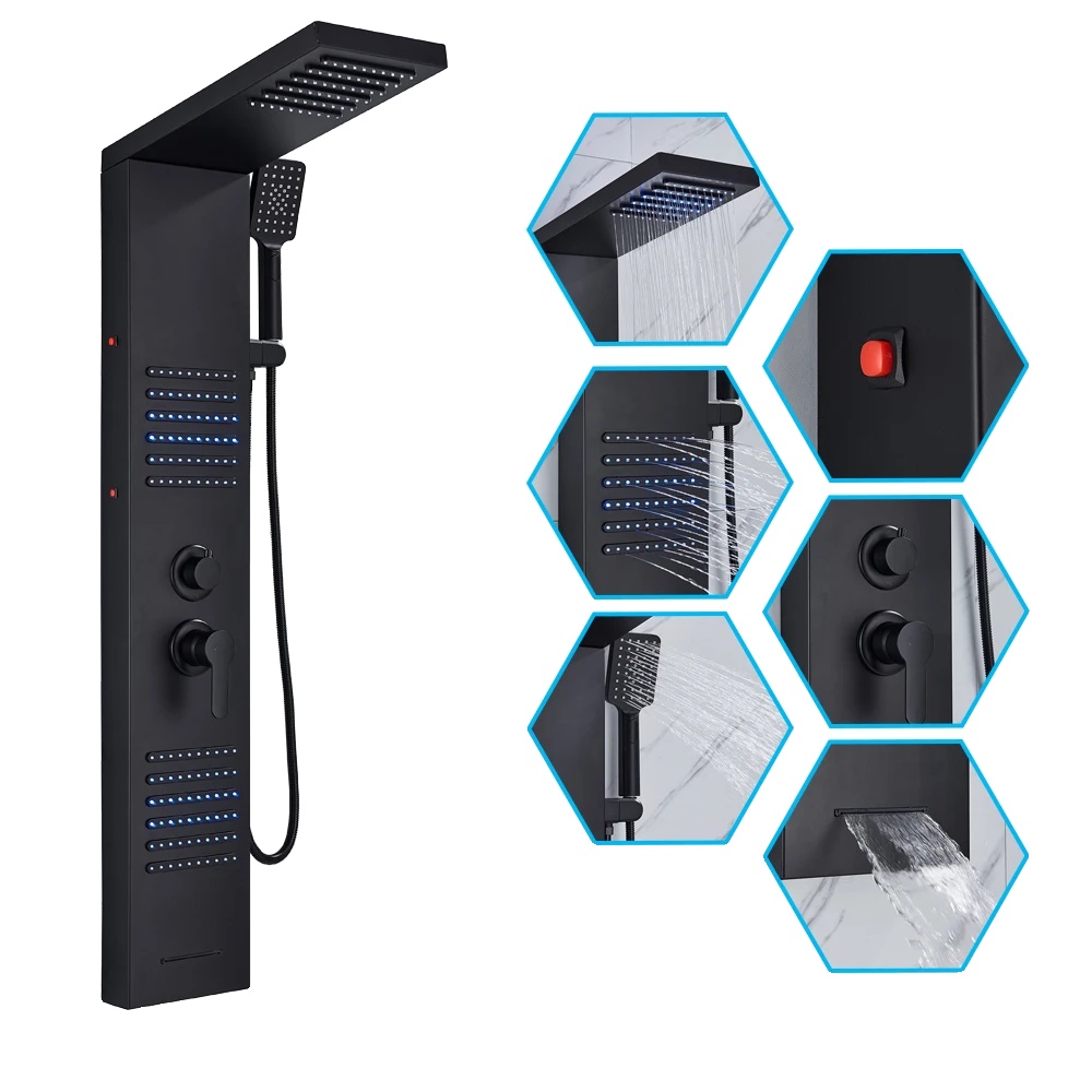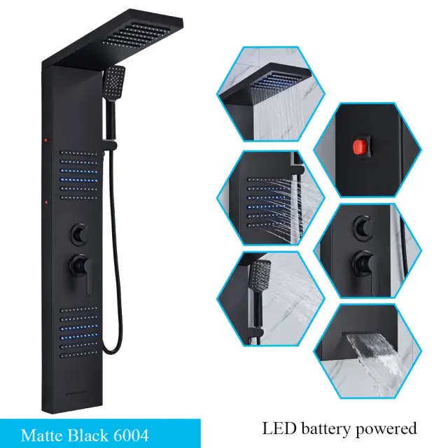 LED tuš panel, dizajn z dvema ročajema, stenska namestitev, mat črna 6004