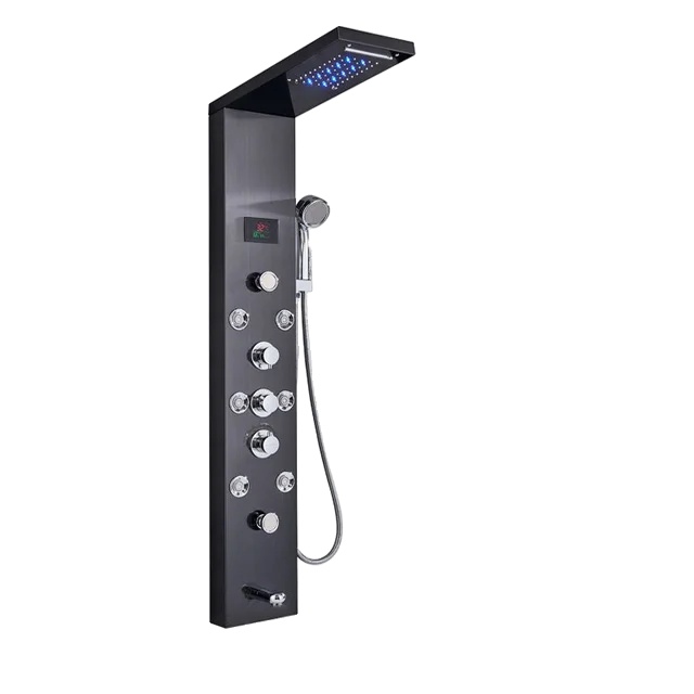 LED tuš panel, slapni dežni tuš glava, SPA masažni curki, črna 8009