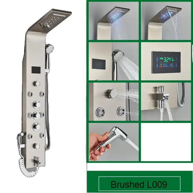 LED tuš panel, sodoben dizajn, SPA masažni curki, pameten prikaz temperature, brušen 8009