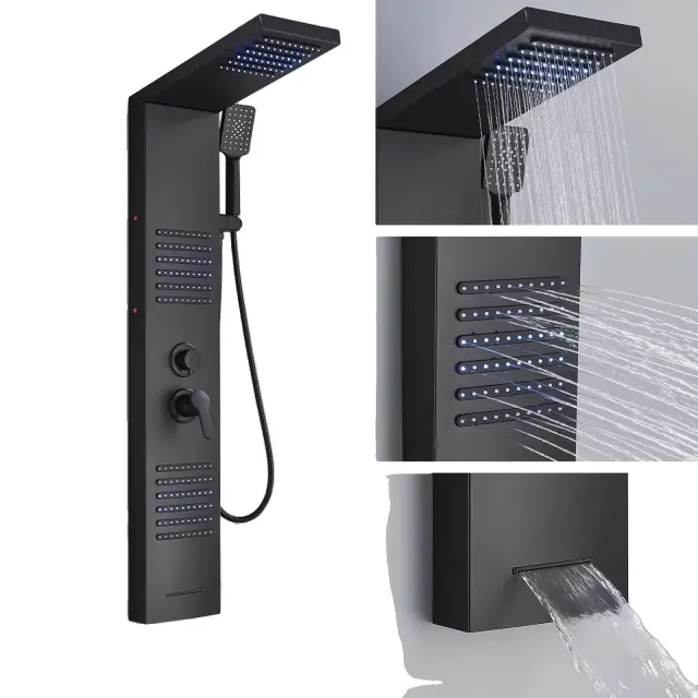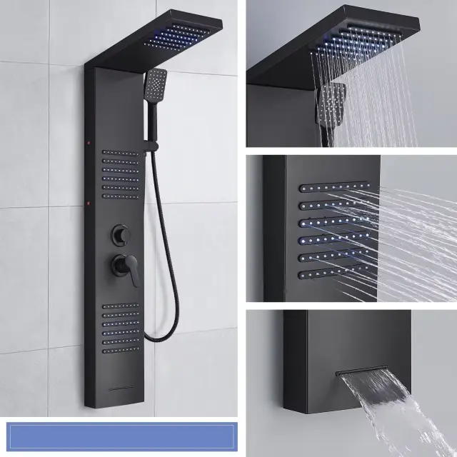 LED tuš panelni sistem, dvojna ročica, SPA šobe, črna 6004