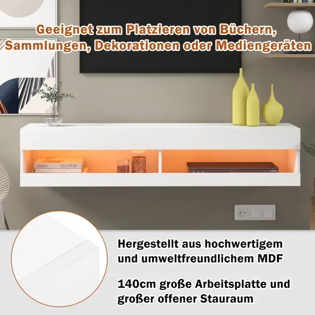 LED TV omarica bela z LED osvetlitvijo in prostorom za shranjevanje - 140x40x30,5 cm
