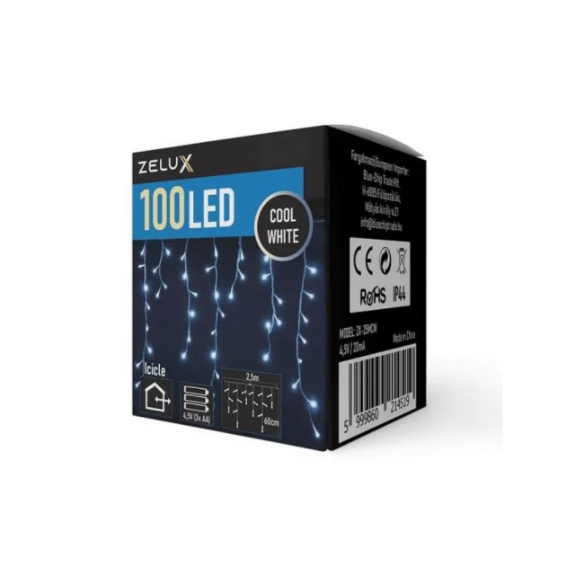 LED zavesa na baterije 100 LED 2.5m hladno bela zelen kabel