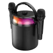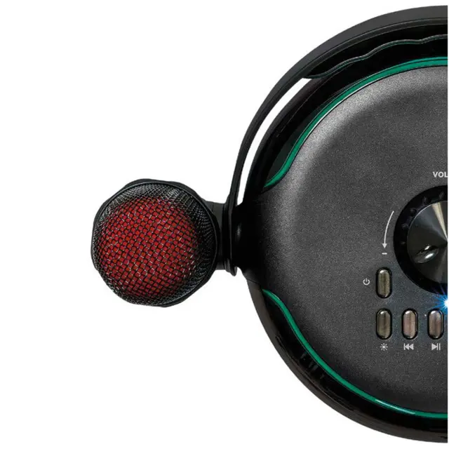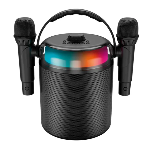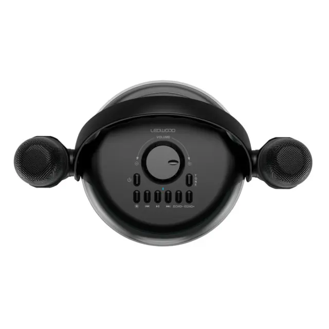 Ta zvočnik za karaoke LEDWOOD zagotavlja 120 W zmogljivega zvoka iz 10 cm nizkotonca in 3,2 cm visokotonca.. Naprava se prek povezave Bluetooth 5.1 poveže s pametnim telefonom, tabličnim računalnikom, osebnim računalnikom ali televizorjem.. Dva brezžična mikrofona posnameta glas in sprožita učinke odmeva, reverba in spremenjenega glasu.. Baterija s kapaciteto 3000 mAh zagotavlja impresivne 3 ure avtonomije.