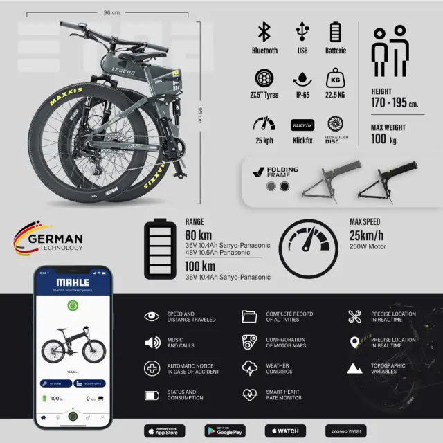 Obnovljeno - kot novo - LEGEND Etna SR reconditionné – zložljivo električno gorsko kolo 27,5”, črno, do 100 km
