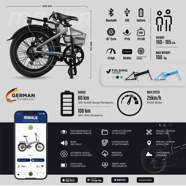 Obnovljeno - kot novo - LEGEND Monza reconditionné – 20-palčno zložljivo električno kolo, srebrno, do 100 km
