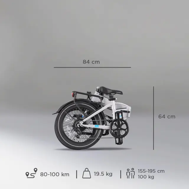 LEGEND Monza – zložljivo električno kolo 20”, srebrno, do 100 km