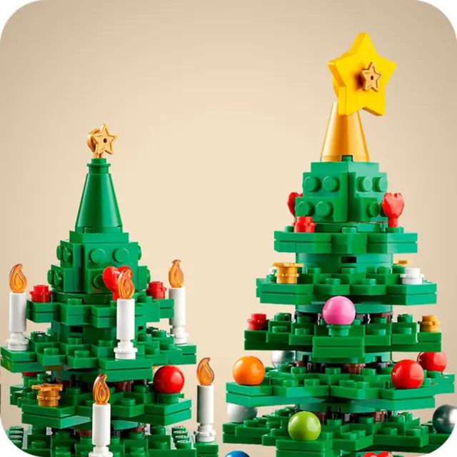 Ta gradbeni set 40573 2 v 1 ima 784 delov za ustvarjanje privlačnega prazničnega dekorja.. Pri tem modelu 2 v 1 lahko izberete, ali želite zgraditi eno veliko drevo ali dve manjši.. Ne glede na to, katero možnost izberete, se lahko zabavate z dodajanjem pisanih prazničnih okraskov na veje in sveč na veje.. Podstavek trdno in elegantno drži drevo na mestu, zato je stabilno na vsaki ravni površini..