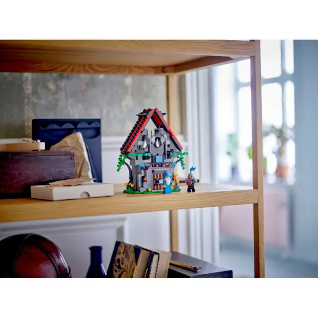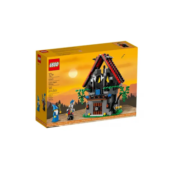 Ta gradbeni set 40601 vsebuje 367 kosov, ki sestavljajo Majistovo čarobno delavnico.. Ta prenovljena različica vključuje številne funkcije prvotne različice. Delavnico je mogoče odpreti, da se razkrijejo podrobnosti o notranjosti, vključuje pa 2 minifigurici: Majisto s palico in viteza.. Podarite ga lahko ljubitelju LEGO, staremu 12 let ali več..