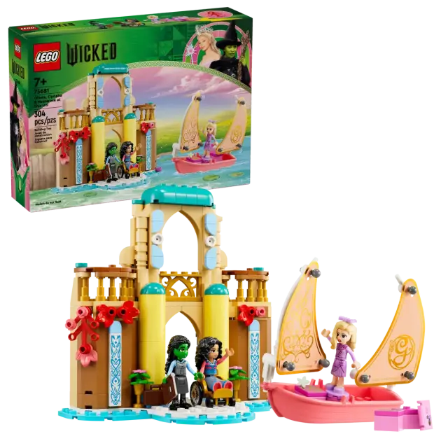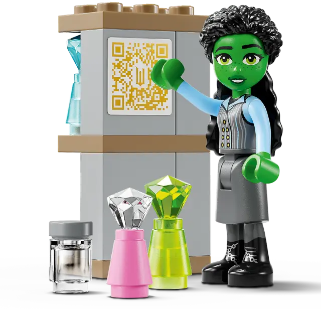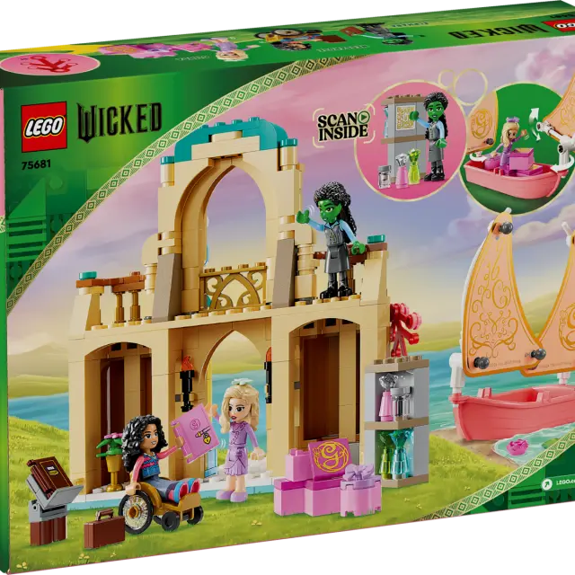 Zajadraj na izjemno dogodivščino v deželo Oz. Pridruži se Glindi na njeni jadrnici, ko prispe na univerzo Shiz in spozna Elphabo in Nessarose. Raztovori njeno prtljago, napolnjeno z modnimi dodatki. Razišči podrobnosti, ki jih je navdihnil film Wicked, vključno s sobo z dnevnikom. Poskeniraj skrito kodo QR kompleta, da nadaljuješ z LEGO® Wicked dogodivščinami – preden obiščeš spletno stran, prosi odraslega za dovoljenje.
