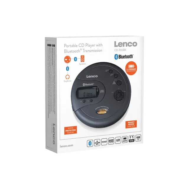 Ta prenosni CD-predvajalnik MP3 prek povezave Bluetooth 5.3 brezžično prenaša zvok v slušalke ali zvočnike do razdalje 10 metrov.. Zaščita pred udarci ohranja stabilno predvajanje s 40-sekundnim pomnilnikom za CD in 120-sekundnim pomnilnikom za MP3.. Združljivost s CD, CD-R, CD-RW, MP3, WMA in WAV za vsestransko predvajanje. Napajanje deluje na akumulatorske baterije ali prek vhoda DC 5V za mobilno ali stacionarno uporabo..