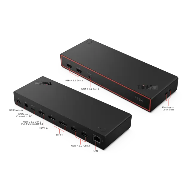 Lenovo ThinkPad 5000 je vsestranska priklopna postaja, zasnovana za povečanje produktivnosti. Opremljena je z vmesnikom USB4 in podpira povezovanje več naprav hkrati, kar omogoča nemoteno povezljivost za video, zvok in omrežne potrebe.