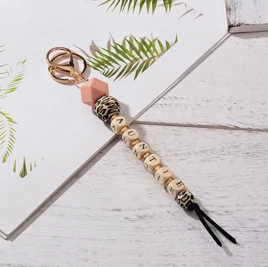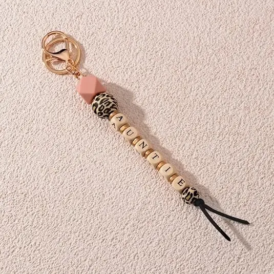 Leopard print silicone bead keychain fashion bag pendant keychain gift for mom, sister, aunt