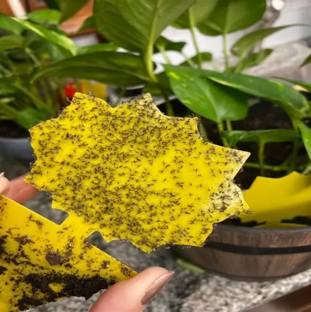 Lepljiva past: past za insekte v obliki majhnega korenovke in svetlo rumene barve, ki privablja leteče insekte, kjer se prilepijo na lepilo. Dajte v prizadeti lonec ali dajte v skledo s sadjem, da se znebite bananinih muh.
