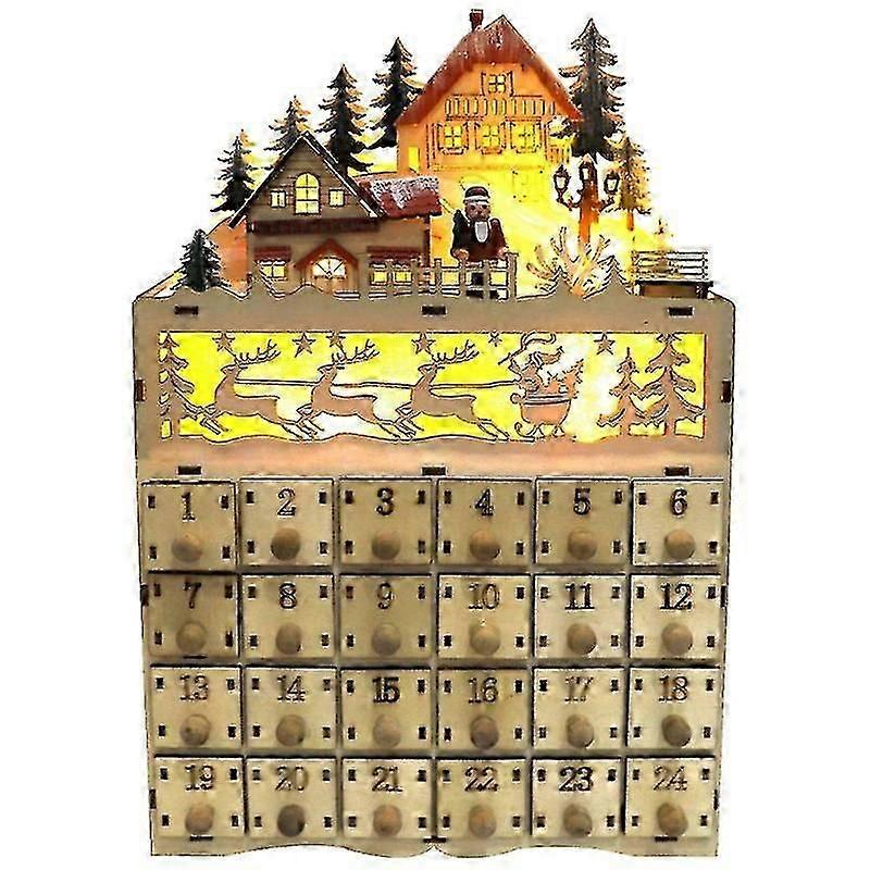 Lesen adventni koledar Božični odštevalni koledar z LED osvetlitvijo 24-dnevna škatla s predali Božično darilo Namizni obrtni okraski