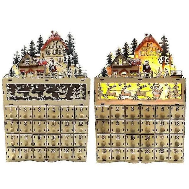 Lesen adventni koledar Božični odštevalni koledar z LED osvetlitvijo 24-dnevna škatla s predali Božično darilo Namizni obrtni okraski