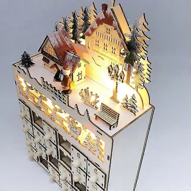Lesen adventni koledar Božični odštevalni koledar z LED osvetlitvijo 24-dnevna škatla s predali Božično darilo Namizni obrtni okraski