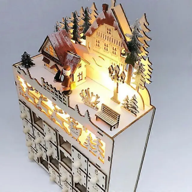 Lesen adventni koledar Božični odštevalni koledar z LED osvetljeno 24-dnevno škatlo s predali Božično darilo Namizni obrtni okraski