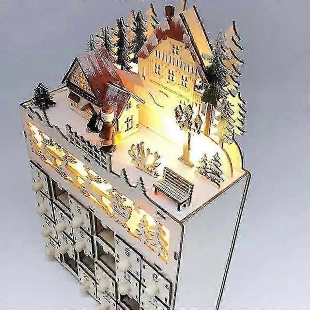 Lesen adventni koledar Božični odštevalni koledar z LED osvetlitvijo 24-dnevna škatla s predali Božično darilo Namizni obrtni okraski