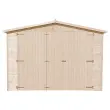 - Vsi leseni deli so dobavljeni naravni. Pri montaži je treba pero in utor premazati s sredstvom za zaščito lesa, da preprečimo gnitje. Zunanjost prebarvajte takoj po namestitvi s pigmentiranim lakom za zaščito lesa z odprtimi porami.