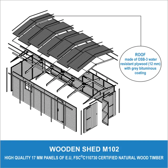 - Streha iz vodoodporne vezane plošče OSB-3 (12 mm) vklj. sivi bitumenski premaz