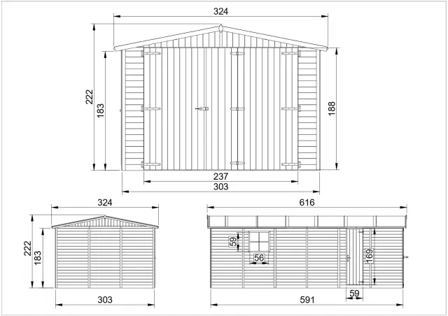 - Zunanje mere brez strehe: D591 x Š303 cm