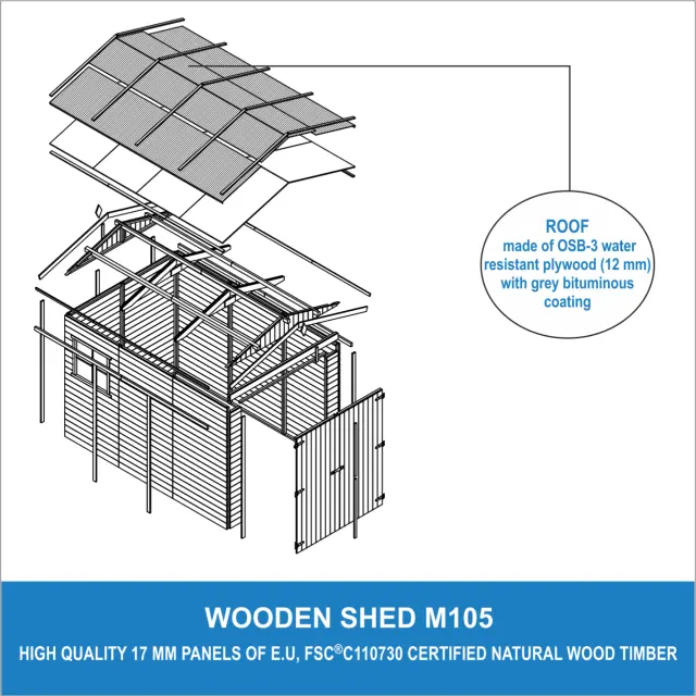 Tehnične specifikacije za garažo iz naravnega lesa za motocikle Timbela M105: