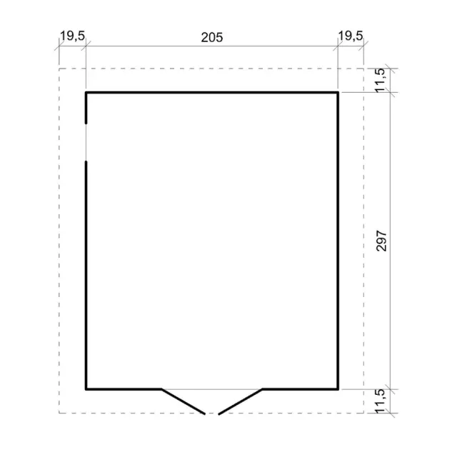 - Zunanje mere brez strehe: D297 x Š205 cm