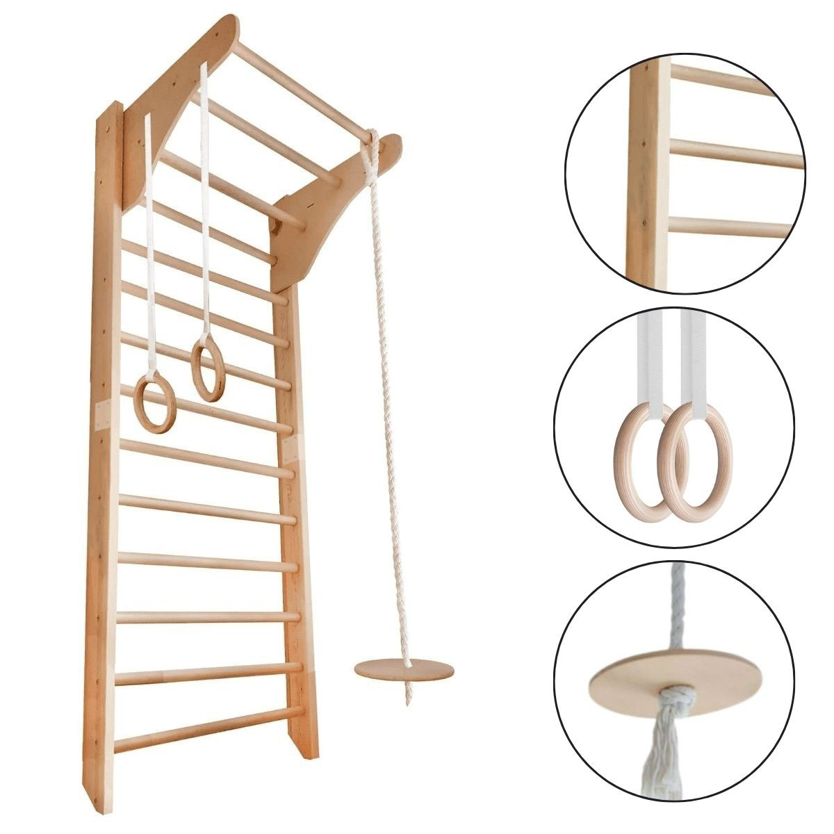 Lesena Gimnastična Stenska Lestev s Pripomočki