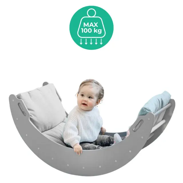 Lesena gugalnica Moon roza-siva