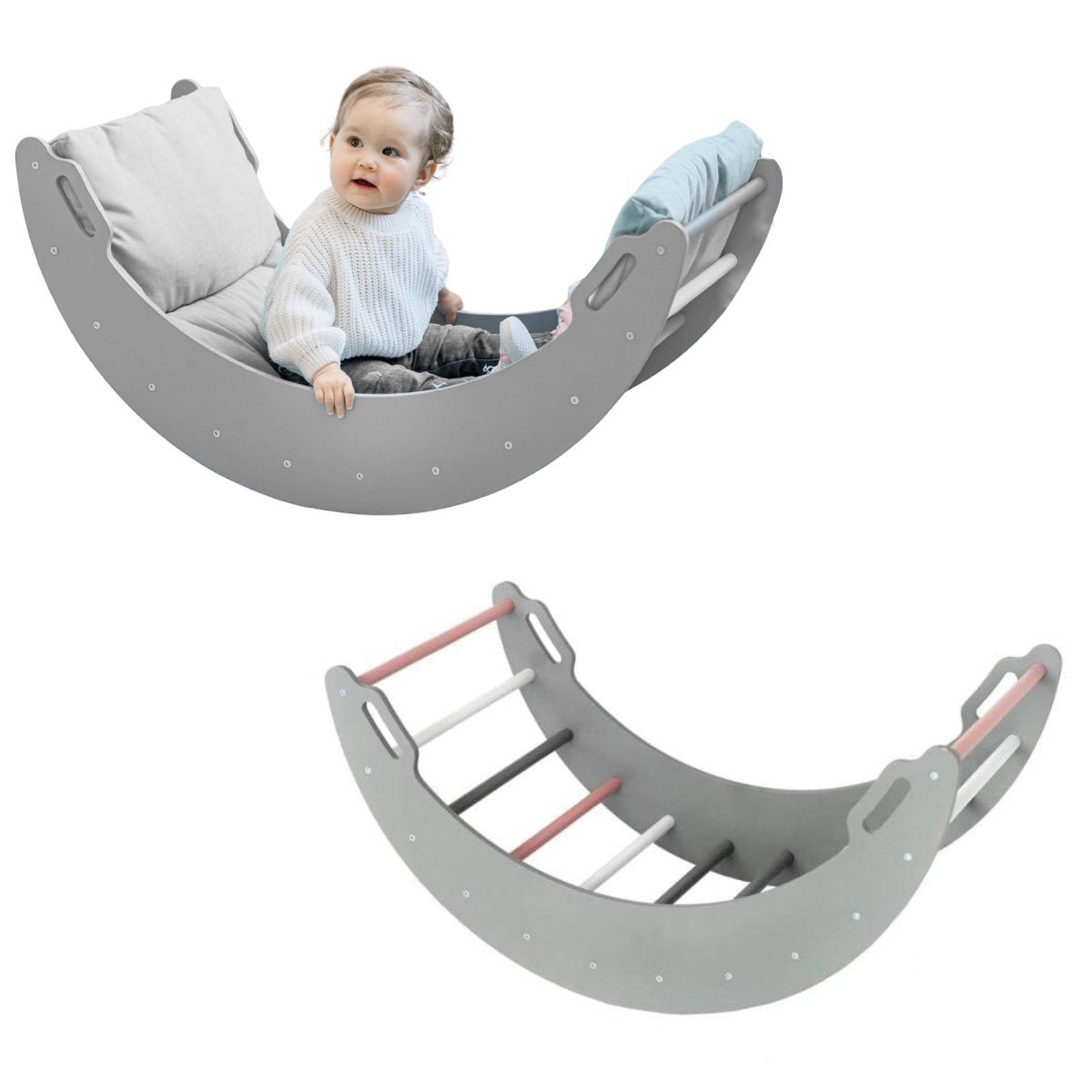 Lesena gugalnica Moon roza-siva