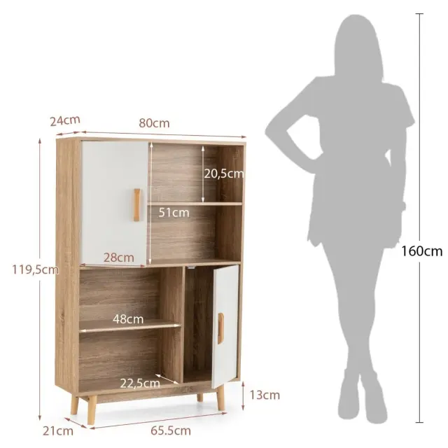Lesena kredenca s 4 nivoji 80 x 24 x 119,5 cm Bela