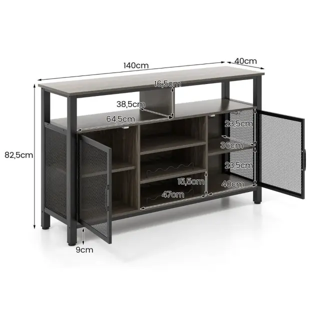 Predstavljamo vrhunski organizator za ljubitelje vina in kuhinjske guruje - našo 140-centimetrsko vinsko omaro! Ta vsestranska rešitev za shranjevanje je zasnovana tako, da očara in navduši. Brez težav prikaže vašo zbirko vin in stilsko sprejme do 8 steklenic. S šestimi vrstami držal za vinske kozarce je vaš dragoceni kozarec elegantno predstavljen in zlahka dostopen. A to še ni vse! Ta izjemna omarica ima še veliko drugih možnosti shranjevanja, ki zagotavljajo, da vsak kuhinjski pripomoček najde svoje pravo mesto. Ta bife omarica je izdelana z robustnim kovinskim okvirjem in je stabilna. Nagibne ključavnice povečujejo splošno varnost uporabe in zagotavljajo boljšo zaščito za vašo družino. Počakajte, še več! Ta čudoviti kos lahko spremenite v osupljivo stojalo za televizor z ravnim zaslonom do 60 palcev. Uporabniku prijazna zasnova in tečaji z mehkim zapiranjem zagotavljajo boljšo izkušnjo. Razširite svojo organizacijo z našo barsko omarico za kavo še danes!