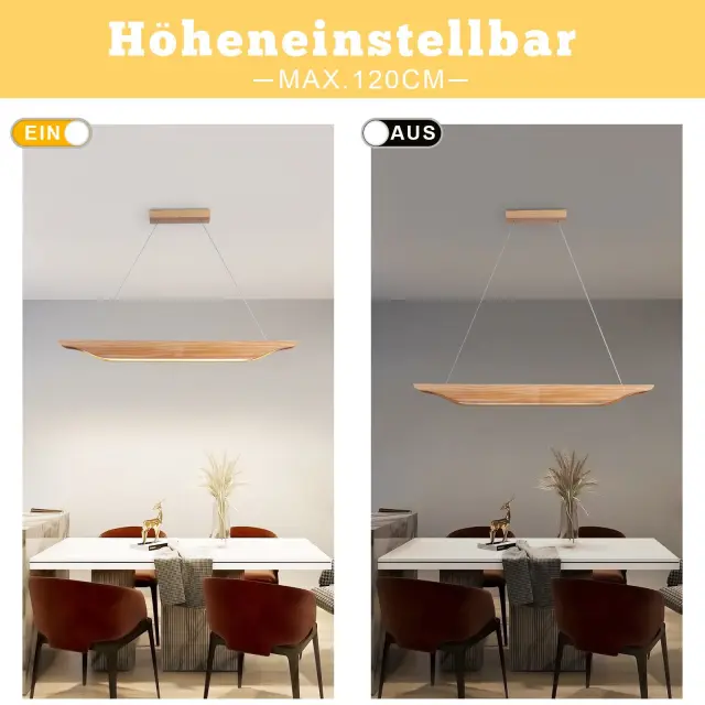 Lesena LED viseča svetilka NETTLIFE - Moderna oblikovalska jedilna miza, 90 cm, možnost zatemnitve z daljinskim upravljalnikom