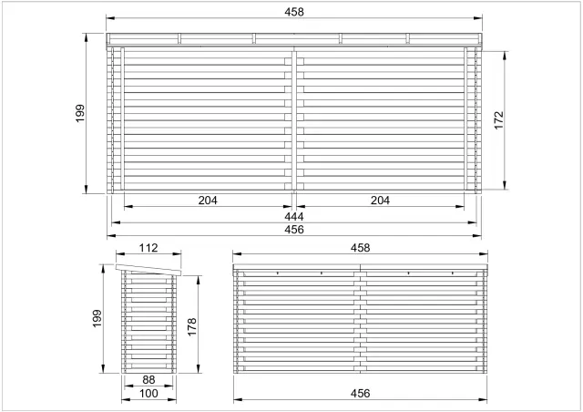 Enostavna montaža - sestavljanje vašega novega nadstreška za drva je preprosto zaradi vnaprej narezanih lesov in podrobnih navodil za namestitev. Kombinacija navzkrižnih kotov in prepletanja peres in utorov je primerna tudi za začetnike navdušence nad domačimi izdelki.