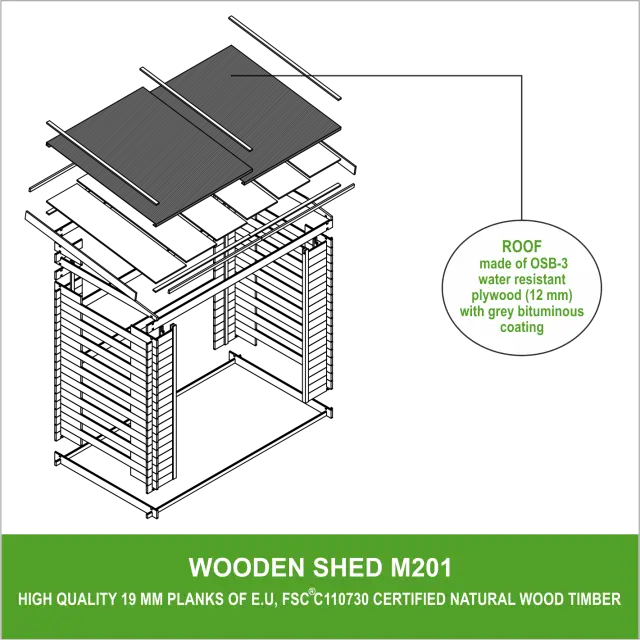 Tehnične specifikacije za drvarnico iz naravnega lesa M201-1: