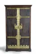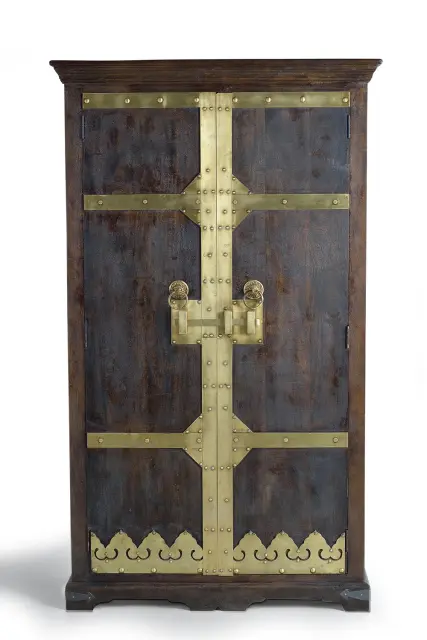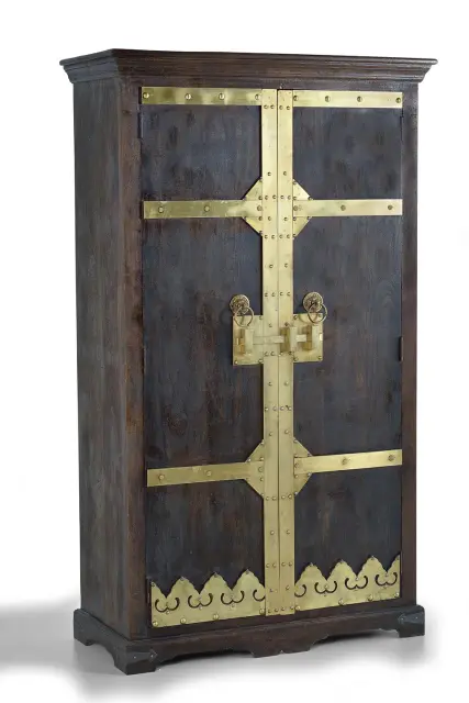 Lesena omara z bronastimi detajli v barvi temnega oreha