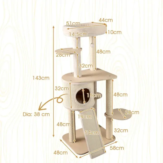 Lesena praskalnica s hišico in platformami Mačja postelja 143 cm