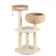 Lesena praskalnica za mačke s košaro in sisalom 104 cm