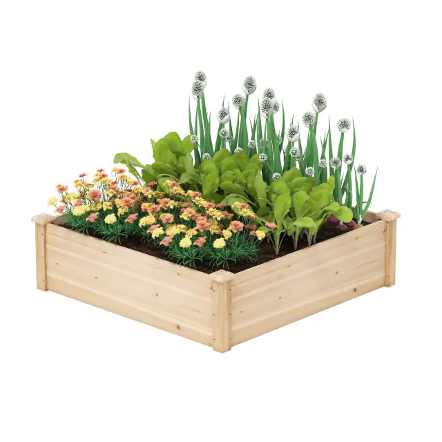 Robustna lesena konstrukcija: Vrtni sadilnik, izdelan iz izbranega lesa jelke, zagotavlja izjemno odpornost proti deformacijam in stabilnost. Poleg tega 4 ojačani vogali utrjujejo celotno konstrukcijo, da preprečijo razpadanje desk.