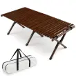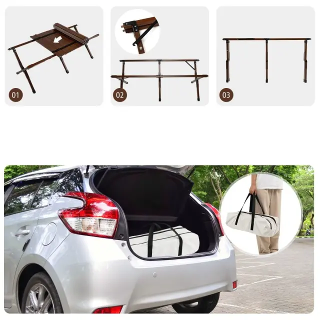 Enostavna namestitev: Leseno taborniško mizo je enostavno sestaviti in zanjo ne potrebujete orodja. Vse, kar morate storiti, je, da razgrnete okvir in ga pritrdite z diagonalnimi nosilci, nato razgrnete mizno ploščo in jo pritrdite v luknje za pritrditev. Zaradi prožnih elastičnih trakov lahko mizno ploščo enostavno raztegnete.