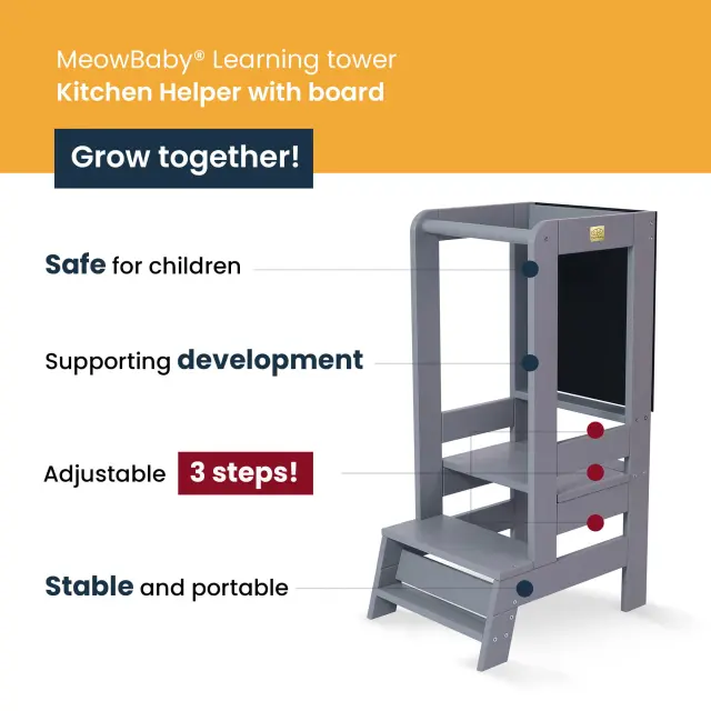 Ide o platformu, ktorá umožňuje deťom zúčastňovať sa na činnostiach spojených s prípravou jedla. Deti majú zvyčajne obmedzený prístup k pultu, drezu alebo kuchynskému stolu. S kuchynským asistentom môže dieťa nielen pozorovať neskoršie fázy prípravy jedla, ale aj aktívne sa zúčastňovať na príprave jedál, prestieraní stola alebo umývaní riadu. Konštrukcia kuchynského asistenta je stabilná a umožňuje nastaviť výšku plošiny podľa veľkosti dieťaťa, čo má priamy vplyv na jeho bezpečnosť a umožňuje mu samostatne sa dostať do postieľky a z nej. Kuchynský asistent MeowBaby® je kombináciou technológie bezpečnej montáže, konštrukčnej stability a ľahkosti tvaru s netradičným, ale minimalistickým dizajnom.