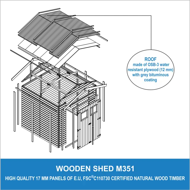 Tehnične specifikacije neobdelane lesene lope M351: