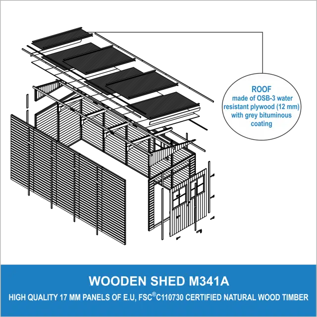 Tehnične specifikacije neobdelane lesene lope M341A: