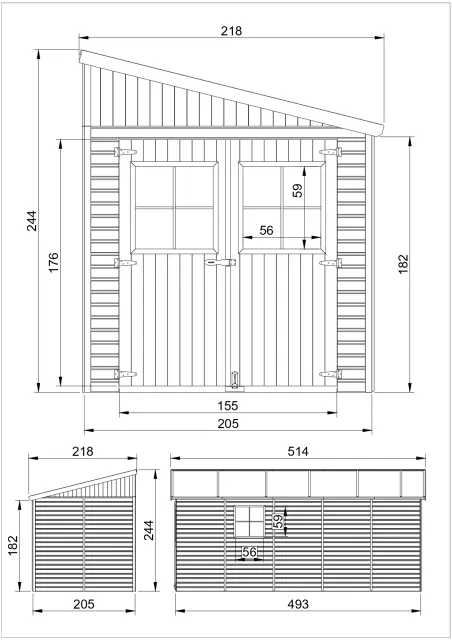 - Zunanje mere brez strehe: D 493 x Š 205 cm