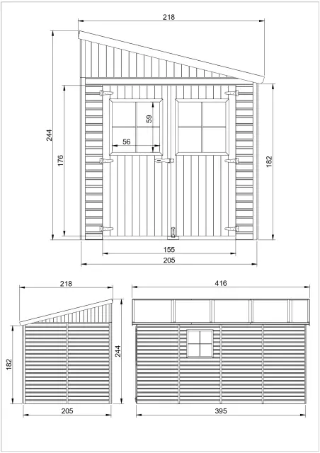 - Zunanje mere brez strehe: D 395 x Š 205 cm