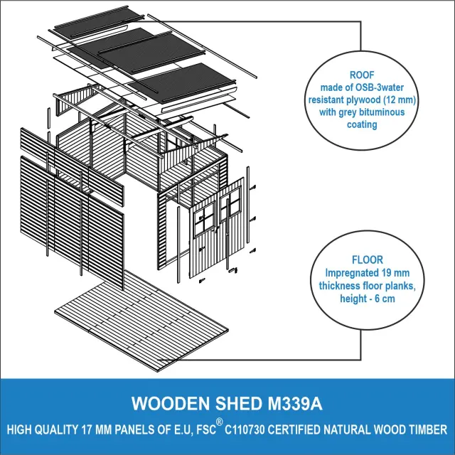 Tehnične lastnosti neobdelane lesene lope M339A+M339G z impregniranim podom: