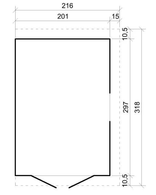 - Zunanje mere brez strehe: D 297 x Š 201 cm